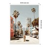 A majestic tiger walks confidently down an urban street lined with palm trees and colorful buildings. The contrast between the wild animal and the modern city creates a surreal and whimsical atmosphere. The sky is clear, highlighting the towering structures and vibrant colors. This Kate and Laurel canvas art print was created by Michael Schauer and printed by Kate and Laurel in Waunakee WI. This modern floating canvas art is sure to bring joy to your space. Our design team curates art that will fit perfectly in any room of your home. Showcase this art in your living room, bedroom, home office, kitchen, bathroom, nursery, or anywhere you want to bring a little beauty and charm to your walls. Specializing in home decor, we are continually bringing timeless works of art for the traditional decorator as well as trend-forward pieces for that eclectic art lover. Our high-quality framed canvas art also makes excellent gifts for birthdays, holidays, or housewarming parties. Printed on gallery-wrapped canvas and framed with a simple gallery frame this wall art is easy to display on the wall and will match with any decor style. The outside display dimensions are 28 in x 38 in by 1.6 in Print Name: "California Tiger Roaming through Palm Springs"