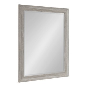 Using a mirror to dress up a part of your home is a simple choice with the Dalphia rectangular wall mirror by Kate and Laurel. It is a beautiful addition over the sink and an essential home decor element for everyday bathroom use. This rectangle mirror features a rustic light grey frame with the look of weathered woodgrain. It has a simple, flat surface with a slight scoop. It's the perfect traditional selection for your bathroom either as a tasteful wall accent or a practical vanity mirror - use two for a great look over a double vanity. An easy way to revamp a space, the Dalphia frame has the perfect dimensions to add a stylish statement to a bathroom vanity, hallway, bedroom, or living room. You could even place two on adjacent walls for opening up space in any smaller room. The handsome greywash finish creates a timeless appearance and blends with other looks well, so it is sure to fit perfectly in a variety of settings and decor styles. The frame is made of a sturdy polystyrene material with a lovely wood grain style. The overall dimensions of the Dalphia wall mirror are 21.5 inches wide by 27.5 inches tall, with a reflective surface measuring 18 by 24 inches.