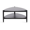Showcase your transitional-inspired style with the Knowlton coffee table from Kate and Laurel. The rich and elegant black finish on the wood adds a touch of sophistication to any space, while the simple and clean lines of the design make it easy to blend seamlessly with any decor style. The satin black finish also lends itself to organic modern design, giving it that look of transitional, timeless decor. A careful blend of solid wood and resilient wooden material was used to create this triangular coffee table, creating a statement that is as durable as it is beautiful. Its overall dimensions are 30.75 inches wide by 32 inches deep by 17 inches tall, allowing the Knowlton to function well as a living room focal point. The top wooden tier is perfect for creating a lovely display area for candles, small lamps, and other accents. The bottom tier of the Knowlton is great for storing your favorite household accessories, from blankets and pillows to everyday essentials. Assemble this table in only a matter of minutes with a straightforward, two-step assembly process.
