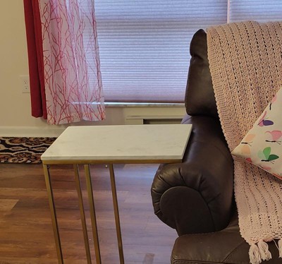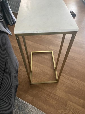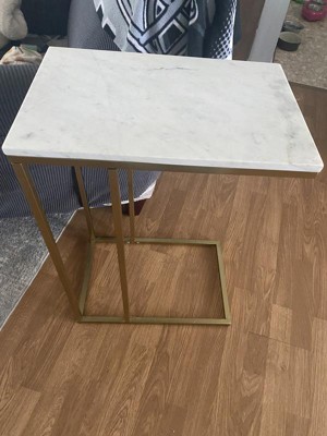 [This review was collected as part of a promotion.] I was looking for a narrow side table for our living room and this table is a perfect fit! It's very elegant and the white marble table top gives a very classy look! This table is perfect for living room,bedroom and also the entryway. It's a narrow C- table and fits perfectly over the sofa chair arm. It's slightly heavy and hence very sturdy and comes packed very neatly in a strong packaging. The assembly is easy and it comes with all necessary hardware and clear instructions. It's a modern glam piece of furniture and goes well with all kinds of interiors. It's easy to clean and ideal for small spaces. I love how sturdy and attractive it is! Thumbs up from me.