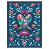 - Art Description: This artwork features two colorful birds surrounded by a symmetrical arrangement of vibrant flowers and foliage. Bright, bold colors give the piece a lively and cheerful appearance. The style is decorative and folk-inspired, with abstract shapes and patterns enhancing the whimsical nature theme.