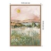 The artwork depicts a serene landscape with rolling hills, a tranquil lake, and vibrant meadows filled with delicate flowers. The sun is low in the sky, casting a warm glow over the scene. The watercolor technique adds a soft and dreamy quality to the painting. This Kate and Laurel canvas art print was created by Annie Quigley and printed by Kate and Laurel in Waunakee WI. This modern floating canvas art is sure to bring joy to your space. Our design team curates art that will fit perfectly in any room of your home. Showcase this art in your living room, bedroom, home office, kitchen, bathroom, nursery, or anywhere you want to bring a little beauty and charm to your walls. Specializing in home decor, we are continually bringing timeless works of art for the traditional decorator as well as trend-forward pieces for that eclectic art lover. Our high-quality framed canvas art also makes excellent gifts for birthdays, holidays, or housewarming parties. Printed on gallery-wrapped canvas and framed with a simple gallery frame this wall art is easy to display on the wall and will match with any decor style. The outside display dimensions are 18 in x 24 in by 1.6 in Print Name: "Neutral Landscape 02"