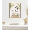 Kate and Laurel Penguins in Palm Bathtub Framed Canvas by Amy Peterson, 18x24, Natural
