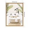 Product Name: Kate and Laurel Penguins in Palm Bathtub Framed Canvas by Amy Peterson, 18x24, Natural