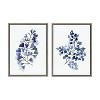 Kate and Laurel Sylvie Botanical Split Fern Indigo and Botanical Maiden Indigo Framed Canvas by Sara Berrenson, 2 Piece 18x24, Gray