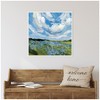 - Gallery Quality Art: Measuring 30 x 30 inches, this is beautifully presented in Sylvie White frame - a modern, white float frame with satin finish, smooth surfaces and dramatic depth.. Expressive Wall Art Story:The artwork depicts a vibrant landscape with a vast sky filled with swirling clouds. Below, a sprawling green field is dotted with blue wildflowers. The scene conveys a sense of tranquility and the beauty of the natural world.