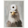 Kate and Laurel Toilet Paper Roll on Bald Eagles Head Bathroom Art Framed Canvas by The Creative Bunch Studio, 18x24, Beaded White