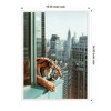 - Art Description: A majestic tiger leans out of a high-rise window, overlooking a sprawling cityscape of towering skyscrapers. The juxtaposition of the wild animal against the urban environment creates a surreal and striking visual impact. The distant skyline adds depth and enhances the sense of the tiger's unlikely perch.