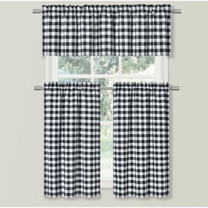 Product Name: Kate Aurora Country Farmhouse Plaid Checkered Gingham 3 Pc Kitchen Curtain Tier & Valance Set - 58 in. W x 36 in. L, Black