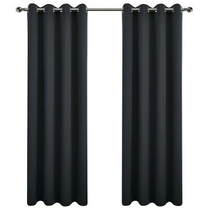 Kate Aurora 2 Piece Solid Colored Room Darkening Grommet Top Thermal Window Curtain Panels - 50" x 45" - Black