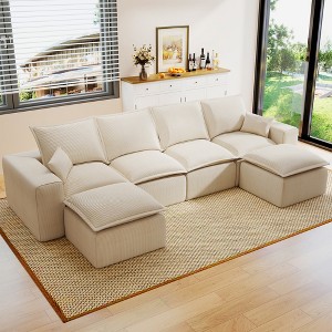 This corduroy modular sofa set stands out as a top home essential with unbeatable core advantages. Crafted from high-quality corduroy fabric, it offers a skin-friendly touch and premium texture that elevates any space. Filled with 40D high-resilience foam, it delivers cloud-like softness paired with long-lasting support—no sagging even with regular use. The modular design allows free combination, perfectly fitting small living rooms, spacious penthouse lounges, solo relaxation, or group gatherings. Plus, the freely movable ottoman adds versatility, serving as extra seating or a footrest. No assembly required—just wait 72 hours after unboxing to enjoy this perfect sofa set immediately, saving you time and hassle. Certified by OEKO-TEX, PUR-US,and SGS, it’s safe, eco-friendly, and suitable for all ages. A perfect blend of safety, comfort, flexibility, and practicality—this high-quality, functional sofa set is a must-have for modern homes!