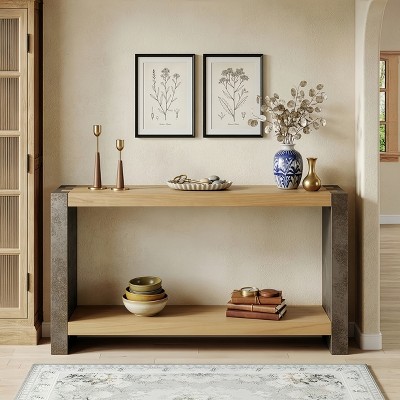 Kayley Rectangle Glass Console Table - CNS7001 - Black Oak - Safavieh