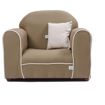 Your child will love being able to kick back and relax in a chair designed just for them with the Keet Roundy Microsuede Chair. This chair is designed to mimic adult furniture in looks and craftsmanship. Its strong and durable frame is covered with high density foam which is extremely comfortable. Its soft, durable, easy to clean microsuede fabric is available in your choice of color so you can easily match your decor. Wooden legs give this chair an authentic furniture look. Your kids will love it. Recommended age: 2-5 years old, chair size: 24 L x 18 W x 18 H in. Weekly vacuuming is recommended to reduce soil buildup. Use light dishwashing soap and warm water for spot cleaning.