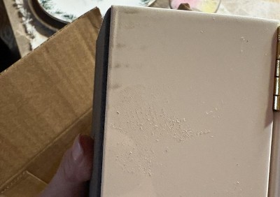 I was extremely disappointed when I received this jewelry box. When I opened the box that it was shipped in, all there was, was the jewelry box that I ordered loose inside the big box. There was no paper around it or Packing supplies to secure it! There was what looked like a little bit of dirt on the edges of it that I assumed was caused by bouncing around inside the cardboard box, but it would not come clean when I wiped it. When I opened the jewelry box, the mirror inside is dirty with fingerprints on it, almost as though it was used as the display. This is poor customer service by target.