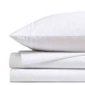 Update your bedding with the cool zone sheet set from Kenneth Cole. Available in solid white or solid grey, these crisp percale cotton sheets offer advanced breathability and supreme comfort for a better night’s sleep. The sheets feature cool comfort technology and moisture wicking properties which keep you cooler and dryer throughout the night. These super soft sheets are wrinkle resistant, oeko-tex certified and machine washable for easy care. The included fully elasticized fitted sheet prevents slipping from your mattress and ensure a perfect fit. The deep pocket fitted sheet fits mattress up to 18". Set includes one flat sheet, one fitted and one pillowcase.