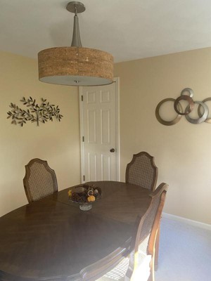 Kenroy Bulletin 3 Light Pendant: Ceiling Lamp, Dining Room Fixture, Cork Drum Shade, UL Listed