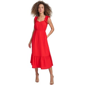 Kensie Womens Solid Midi Dress, mediumred, 10