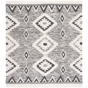 Elevate your space with this exquisite 7' X 7' Square area rug, showcasing a timeless black and ivory palette. Expertly hand-knotted in India, this piece exudes craftsmanship and attention to detail. The blend of 80% Wool and 20% Cotton ensures durability and a soft underfoot experience. With a comfortable 3/8" pile height, it provides a luxe feel without being too bulky. Inspired by traditional motifs, the rug features an intricate pattern that infuses any room with a touch of elegance. Please note that, while captivating, this rug is not washable and lacks a slip-resistant backing, so a separate pad is recommended for stability. Add a touch of sophistication to your decor with this non-washable, beautifully designed square rug.