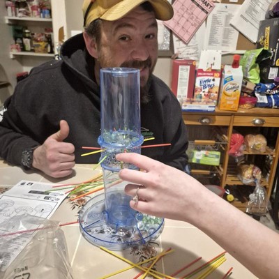 [This review was collected as part of a promotion.] This game is so fun for adults and children! The objective is to get the least amount of marbles in your cup but my kids also wanted to reverse it and see who could get the most marbles. Switching it up allowed them to play longer and keep having fun with it! Set up was not fun. The sticks bend and it was work to get them lined up on the other side and when there were a bunch in already it was tough to push the last ones through. Also, part of the game play is spinning the whole thing to line up with your cup for your turn. The one spinning it gets the marbles if they fall but this doesn't always line up with your cup and that can lead to some arguments of who should get those marbles that fall. Lastly, the biggest issue is the cups arent large enough if you play 2 player. The marbles spill over into the other cups. When we tried to rebox it after we were done it was also very hard to separate the tube to fit in the box. The plastic feels durable but trying to pry it apart didn't feel like a great idea so we ended up leaving it together. I do wish there was a storage pouch or bag for the marbles and straws. Otherwise, this game was a ton of fun and i'm sure it will be included in our future board game nights.