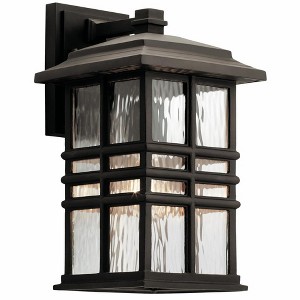 Inspired by classic craftsman architecture, This Beacon Square 14.25in. 1 light outdoor wall lantern's clean lines deliver a transitional and versatile style. Crafted from Kichler's Climates materials, each fixture is designed to withstand harsh outdoor elements, like saltwater spray and UV rays, for a beautiful and long-lasting finish. The clear, hammered glass simulates the look of water, enhancing the overall style, while still letting the light shine through. Back Plate Height: 6.50 Back Plate Width: 4.75