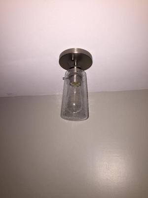 [This review was collected as part of a promotion.] The light was easy to install. The set screws made it easy to get a flush mount. The seeded glass has a nice look to it with the light on or off. Great light that I would definitely recommend. We used it without the drop feature, but it would look nice as a pendant as well.