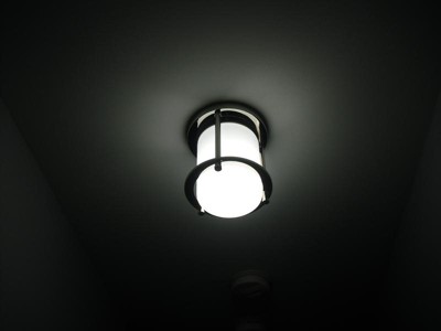 [This review was collected as part of a promotion.] Nice enclosed light fully covering the bulb Used at the top of a staircase where you would normally see the bulb hood looking would also work great in a bathroom or maybe outdoors Well made and easy to mount