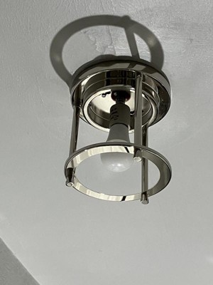 [This review was collected as part of a promotion.] We replaced the light in our hallway with the Brit 7.25 Inch 1 Light Flush Mount with Satin Etched Cased Opal Glass in Polished Nickel. Not only does it look so much more elegant with it's polished nickel and opal glass, the hallway is also much brighter even though we used the same bulbs as we had been using. Assembly was as easy as screwing in the poles, placing the ring over them and securing them with the end pieces. The opal glass screws on to the light fixture so changing the light bulb is super easy. I love the look of this light, it looks beautiful when the light is on and when it is off.