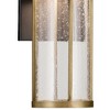 The Camillo LED outdoor wall light is modern and refined. Its vertical louvers encase clear seeded glass, giving it a dimension that makes you look twice. Dual finishing in textured black and natural brass enhances your outdoor space. Material: Aluminum, Finish Color: Textured Black, Width: 4.75", Height: 12", Depth: 5.5", Height From Outlet Box: 3.75", Backplate Width: 6.5", Backplate Length: 5.5", Lamping Type: LED, Number Of Bulbs: 1, Wattage: 18 Watts, Cri: 92, Color Temperature: 3000 Kelvin, Lumens: 688, Dimmable: Yes, Moisture Rating: Wet Rated