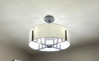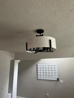 [This review was collected as part of a promotion.] I am really enjoying the Malen 20 Inch 8 Light Semi-Flush with White Fabric Shade in Black. This is a really beautifully designed light fixture. I absolutely love just how well the eight bulbs illuminate the space that we hung this light fixture in. The 20 inch round shade is very impressive and gives the space a very elevated look. The Malen was very easy to install. I highly recommend this light fixture to anyone looking for a very dramatic but highly useful light fixture.