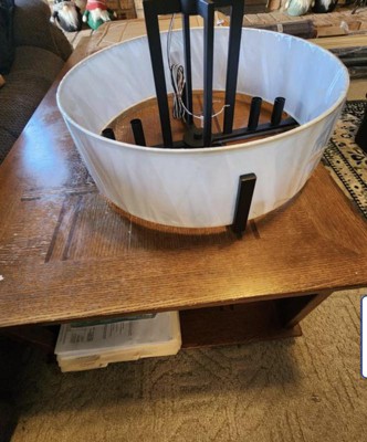 [This review was collected as part of a promotion.] Another beautiful light fixture from Kichler. The fabric shade gives a soft and elegant feel, and it really lights up the place. I do enjoy the open bottom, so you don’t collect those pesky bugs. This light is very versatile with the dimmable feature and that fact you can purchase extra down rods. Kichler never disappoints- great packaging, easy installation and excellent quality and design.