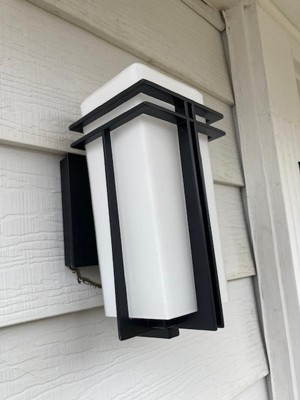 [This review was collected as part of a promotion.] A sleek style outdoor light complete with frosted glass and straight lines of matte black frame. Easy to install and maintain. Glass is thick and solid for durability. The matte black frame gives off clean, modern lines that are very appealing.