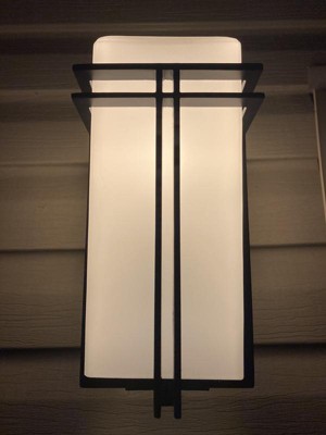 [This review was collected as part of a promotion.] I put this Tremillo light outside our new deck. It looks amazing! The black finish matches our black spindles on the deck. The satin etched opal glass gives out the perfect amount of light so it isn't too bright~ now I need the Tremillo light post to match the rest~