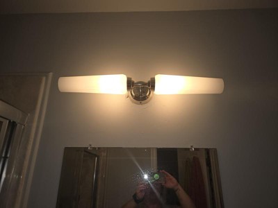 [This review was collected as part of a promotion.] Fashionable and bright. This light looks great in my bathroom it adds Style and is very bright. I love that it faces my wall on each side it really gives a great reflection. It was very easy to install and took about 20 minutes after we took down the builder-grade like we had. I highly recommend