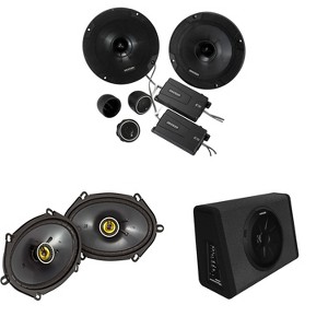 Get everything you need to upgrade your car's audio system with this exclusive bundle. The package includes the Kicker CS-Series CSS65 Component System with 6.5-inch speakers and tweeters, the Kicker CS-Series CSC68 Coaxial Speakers measuring 6x8 inches, and the Kicker BassStation 10" Powered Loaded Enclosure.