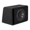 CompVR Subwoofers loaded in factory-tuned loaded enclosures have been reengineered for incredible KICKER bass with Forced-Air Cooling™. You get a cool, reliable speaker that lasts and lasts. Thick black carpeting gives the tough enclosure a sleek, refined look. The front-facing tuned port raises the bar for acoustic efficiency, creating incredible bass levels with minimal amplifier power.