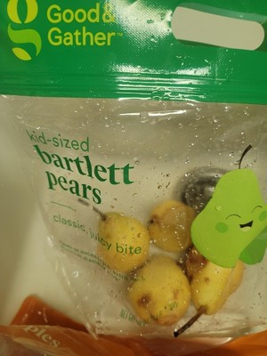 When your kiddos start bugging you for a sweet snack, you can feel good satisfying their sweet tooth without turning to candy or cookies when you have a three-pound bag of Kid-Sized Bartlett Pears from Good & Gather™ on hand. This bag of pears includes three pounds of small Bartlett pears that are the perfect portion size for little eaters. They'll love the juiciness, classic sweetness and smooth texture of these kid-sized pears, and you'll love that the pears meet or exceed U.S. No. 1 grade standards for quality you can feel great about. Toss a couple in your bag for an easy on-the-go snack, or slice them up and serve with pieces of their favorite cheese for a tasty after-school snack.