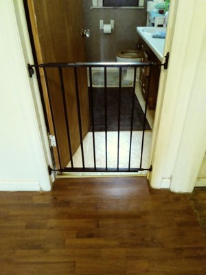 [This review was collected as part of a promotion.] I recieved this baby gate a few days ago and am really happy with it. I have a 15 month old and he pushes the pressure gates over but with this gate it mounts to the wall and is very secure. I love how there is not a bar you have to step over like other gates I've seen. I reccomend this baby gate and plan on getting another one for my hallway.