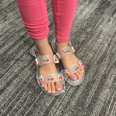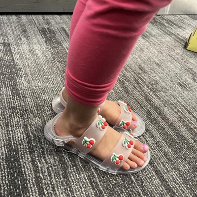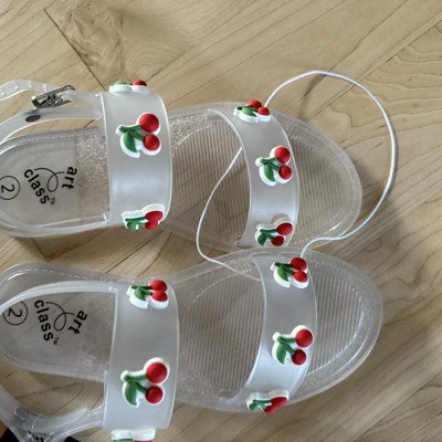 Bring a sweet update to your kid's footwear collection with the Saniah Clear Jelly Sandals from art class™. Designed with red cherries on the top straps for a cute look, these clear jelly sandals boast an adjustable buckle closure on the ankle strap for a snug, customizable fit. The open round toe and back offer a breezy feel, and the simple design pairs well with a wide range of outfits.