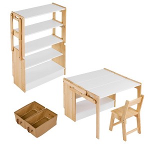 Art Table and 1 Chair Set, Convertible Activity Tabl, Craft Play Desk with 2 Storage Box, Folding Table and Chair Furniture Set, Adjustable Table