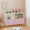 Kids bookcase with Collapsible Fabric Drawers, Children's Book Display, Toy Storage Cabinet Organizer, White/Pink