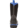 A functional easy on/off boot, the Kid's Element, by Muck Boot, offers a unisex style to the kid's winter portfolio. Fully waterproof and fleece lined in a popping blue color, this boot will keep feet warm with 5mm of neoprene, making this is the perfect winter boot for children. This black boot has a suggested comfort range Comfort Range: -20°F to 50°F / -30°C to 10°C.