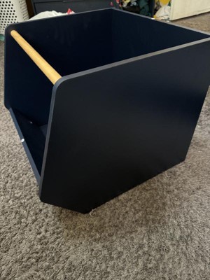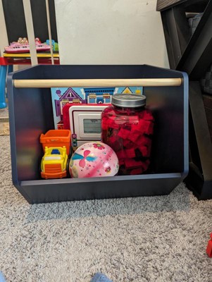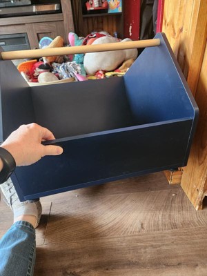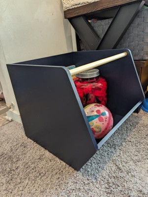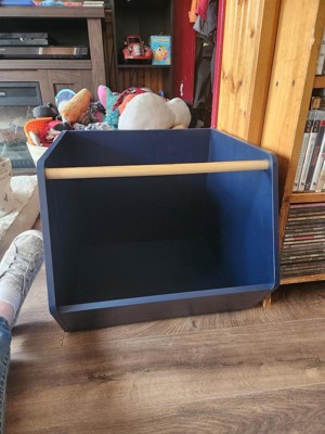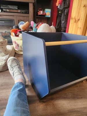 I loved this storage bin to store toys in my living room without them looking a mess. It was easy to put together and looks great. It's not too heavy and easy to move around if needed the wooden bar is also removable but helps keep toys contained as well.