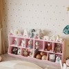 - Key Features: The cabinet features three spacious tiers, providing ample storage for a variety of and books. Its closed back design ensures items stay securely inside, preventing small objects from falling out. Crafted from durable wood, the cabinet combines functionality with a charming look that fits seamlessly into any child's room or play area.