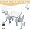 Introducing the Kids Table and 4 Chairs Set, the perfect addition to your child's playroom or dining area. Designed for children ages 2 to 8, this height-adjustable toddler table and chairs set is ideal for reading, drawing, playing, and eating. Crafted with a durable particleboard desktop, the table offers a sturdy and reliable surface that can withstand daily use.