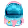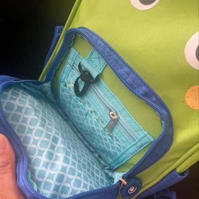 Super cute bookbag and my two younger kids love the design! They love carrying it around all the time. The inner lining of the bookbag is easy to wipe and clean. I am able fit a change of clothes, some diapers and wipes, a snack, and a small toy in the bookbag. There is a chest clip which helps with keeping the bookbag on them and not sliding off. The front pocket has room for me to put a small coloring book and some pencils and crayons for the kids to color. Overall, I love this bookbag and will have to get another one so my two younger kids don’t fight over it.