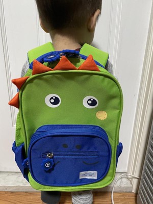 This is the perfect size backpack for a toddler/preschooler. It can easily fit a change of clothes, diaper, snack and a little toy. The front pouch can hold ID and smaller items like a pair of socks or gloves. I personally think the dinosaurs design is so cute and easy to spot.