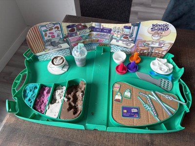 [This review was collected as part of a promotion.] The Cafe Case is by far the cutest Kinetic Sand set weve seen yet! I love that the case keeps everything contained and is so easy to pack up and put away. My daughter loved creating cafe drinks and treats, pretending to be a pro barista. The four colours are beautiful and all of the accessories are amazing!