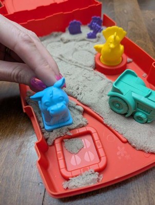 The kids loved their Kinetic Sand Sandy Farm Set and it's a real value for the price I paid for this starter set! I loved the oh so smooth fine sand in a very light color, how the kids played with the sand on the case, preventing it from going everywhere and then how they could store everything inside the case for later use. My only gripe is that I wish it came with more sand, even if they charged a bit more. I solved the problem by purchasing a 3 lb package of Kinetic Sand separately but that sand was too coarse and darker colored, so it didn't blend in perfectly. The kids paid no attention to the purple vegetables in the set and they wound up on the floor and got lost.