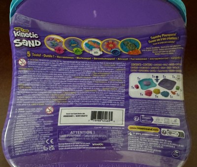[This review was collected as part of a promotion.] My son loves this Kinetic Sand. This kit comes with so many fun pieces to play in the sand that he stays busy for quite some time. I love that the case keeps the sand and all the toys together and he can play with the sand right in the box leaving very little mess.