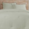 King 3pc Lark Duvet Set Green - Vue: Midweight Cotton, Hidden Button, Contemporary Style, Includes 2 Shams, Solid Pattern